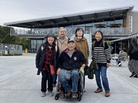 家を出る前に室内用車いすから26インチの自走用車いすに乗り換えたけど今日は長距離走るわけじゃないからとコンパクトな24インチの外出用車いすに再度乗り換えて一番近い上溝駅まで送ってもらって同級生と合流して9時28分の電車に乗ったらもう2人乗ってて海老名駅でも合流して計6人